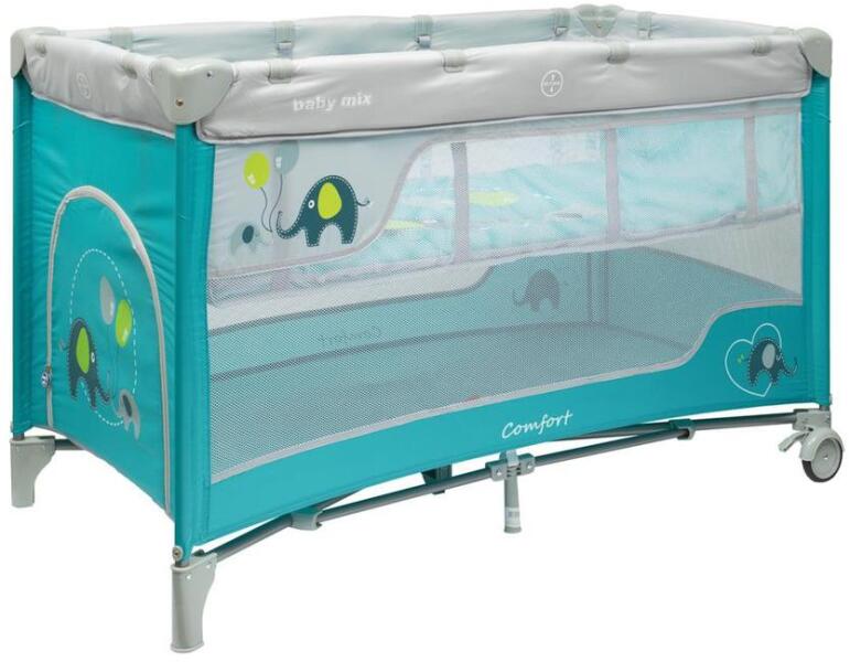 A praktikus hordozható utazóágy Baby Mix nemcsak utazóágynak, hanem járókának is használható. Élvezze az időt babájával, nyaraláskor vagy útközben. Az egyszerű mechanizmusnak köszönhetően gyorsan és egyszerűen összecsukható, beteheti a mellékelt, pántokkal ellátott praktikus táskába, és kényelmesen beteheti az autóba. Az ágy nagyon könnyű, fékkel ellátott kerekekkel van felszerelve, így könnyen áthelyezheti egy másik szobába, teraszra vagy kertbe. JELLEMZŐK: