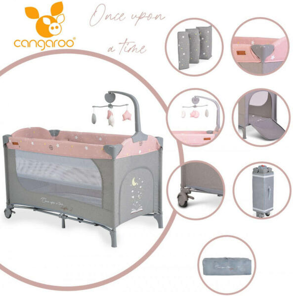 Cangaroo Once Upon a Time 2 utazóágy: Tökéletes kényelem újszülötteknek és kisbabáknak ? Ez a gyönyörű rózsaszín Cangaroo Once Upon a Time 2 utazóágy ideális választás otthonra és utazásra egyaránt. Könnyen összeszerelhető és összecsukható, így bárhová magaddal viheted. A második szint extra kényelmet biztosít a 0-6 hónapos babáknak. ✨ Főbb jellemzők: Könnyű összeszerelés és szállítás ✈️ Kényelmes, puha anyagok ? 15 kg-os maximális teherbírás ? 90 cm-es magasságkapacitás ? Vidám, forgó játék dallamos zenével ? Praktikus hordtáska a tároláshoz és szállításhoz ? Kiegészítő párna a még nagyobb kényelemért ? Oldalfalon lévő cipzáras nyílás a könnyű hozzáférésért ? Biztonságos és stabil konstrukció ?️ Méretek: (lásd a termék képeit) Lepd meg babádat ezzel a csodálatos utazóágyal, amely garantáltan kellemes alvási élményt biztosít neki, bárhol is vagytok! ?