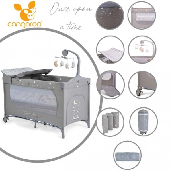 Cangaroo Once upon3 utazóágy 2 szintes zenélő játékkal, pelenkázós szürke