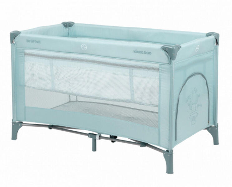 Kikkaboo utazóágy - kétszintes, menta színű Ez a praktikus és helytakarékos utazóágy tökéletes választás újszülöttek és nagyobb babák számára egyaránt! Két szintes kialakításának köszönhetően hosszú ideig használható. Főbb jellemzők:Két szint: A felső szint újszülötteknek (0-6 hónap, 9 kg-ig), az alsó szint nagyobb babáknak (6-36 hónap, 15 kg-ig) ideális. Kényelmes: Puha matracbetéttel szerelt. Jó szellőzés: Hálós ablakok biztosítják a megfelelő légáramlást. Biztonságos: Oldalsó cipzárral könnyen nyitható. Kompakt: Összecsukható, hordtáskával szállítható. Vidám minták: Játékos dizájnnal a kicsik örömére. Méretek: Termék: 120x60x75 cm Doboz: 77,7x21x21 cm Súly: Termék: 8,4 kg Doboz: 8,8 kg Lepd meg babádat ezzel a kényelmes és biztonságos utazóággyal!