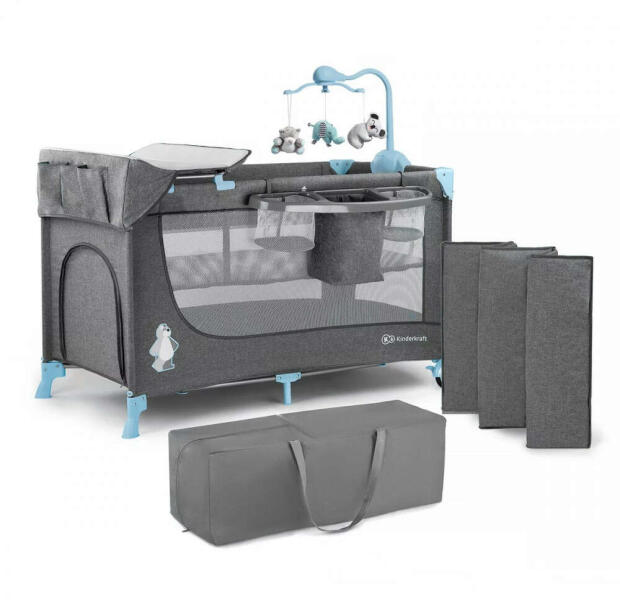 Kinderkraft JOY Multifunkciós Utazóágy - Kényelmes alvás útközben és otthon ? Ez a praktikus utazóágy tökéletes választás újszülöttek és 15 kg-ig terjedő súlyú babák számára, akár otthoni használatra, akár utazáshoz. Kiváló minőségű anyagokból készült, könnyen tisztítható és rendkívül kompakt méretre csukható. Főbb jellemzők:Két magassági fokozat: Könnyű hozzáférés a babához. Kompakt összecsukhatóság: Hordtáskával könnyen szállítható. LockGuard védelem: Biztonságos összecsukódás elleni védelem. 60x120 cm-es fekvőfelület: Bőséges hely a babának. Oldalsó tároló zseb: Praktikus tárolóhely a pelenkáknak és egyéb kellékeknek. Kicipzározható ágyvég: Könnyű hozzáférés a babához. Tartozékok: Játékkarika, pelenkázó lap, matrac, emelőbetét és hordtáska. Méretek:Kiterítve: 126x62x76 cm Összecsukva: 77x21x21 cm Könnyű tisztítás: A huzat nedves ruhával könnyen tisztítható. Élvezze a kényelmet és a biztonságot, amit ez a multifunkciós utazóágy nyújt Önnek és babájának! ✨