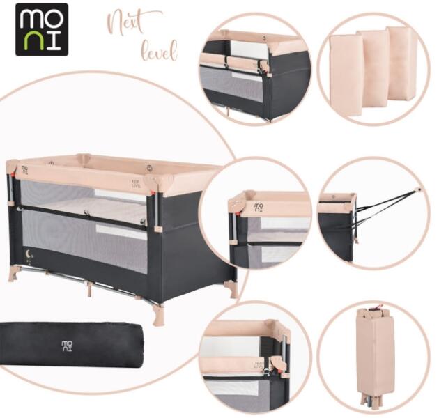 Moni Next level utazóágy lehajtható oldalfal 2 szint bézs
