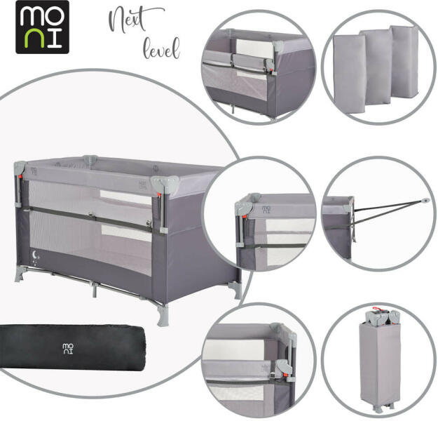 MONI Next Level Utazóágy: Kényelem és biztonság bárhol ✈️ A MONI Next Level utazóágy tökéletes megoldás, ha a babádnak biztonságos és kényelmes alvóhelyre van szüksége utazás közben vagy otthon. Ez a stílusos, szürke utazóágy könnyen összecsukható és szállítható, így bárhová magaddal viheted. Főbb jellemzők:Lehajtható oldalfal: Könnyű hozzáférést biztosít a babához. 2 magassági szint: A gyermek növekedéséhez igazítható. Stabil szerkezet: Biztonságos pihenést garantál. Minőségi anyagok: Tartós és kényelmes. Kompakt méret: Könnyen szállítható és tárolható. Ez az utazóágy nem csak praktikus, hanem a babád biztonságát is szem előtt tartja. A stabil szerkezet és a minőségi anyagok biztosítják, hogy a kicsi nyugodtan pihenhessen, bárhol is vagytok. ?